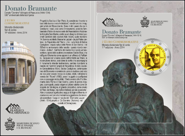 Coffret 2 euro commémorative Saint-Marin 2014 - Bramante