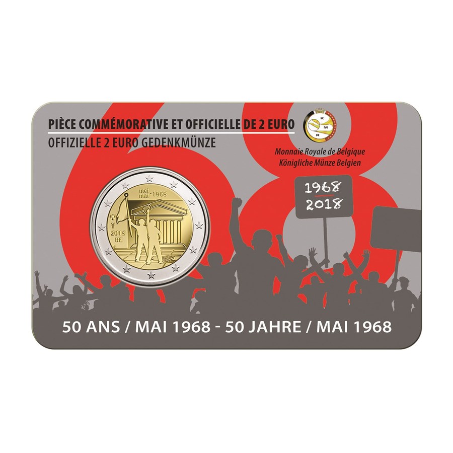 Coincard 2 euro commémorative Belgique 2018 - Mai 68 Fr