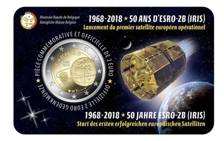 coincard 2 euro commémorative Belgique 2018 - ESRO - Fr