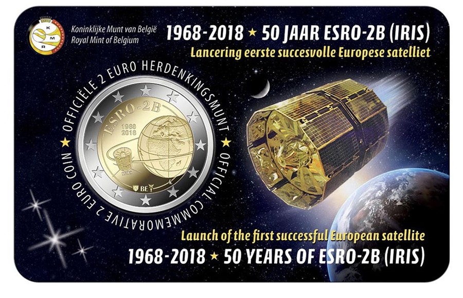 Coincard 2 euro commémorative Belgique 2018 - ESRO - NL
