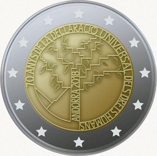Coincard 2 euro commémorative Andorre 2018 - Droit de l'homme